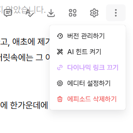 에피소드의 경우 기본적으로는 비활성화되어 있어 우측 상단 점 세 개 모양 메뉴 안에서 활성화할 수 있지만, 위키의 경우는 처음부터 활성화되어 있습니다.