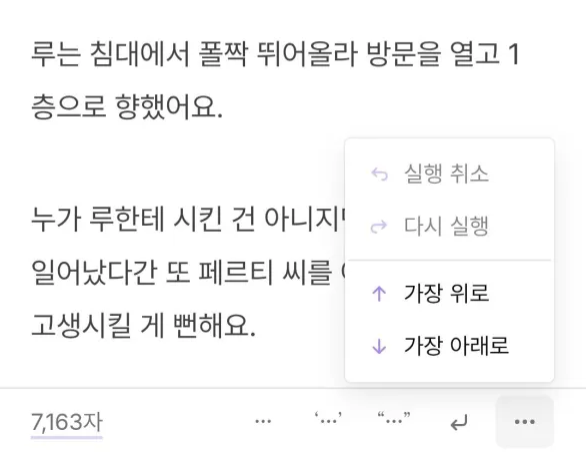 모바일에서 활성화되는 에디터 하단 UI로, 모바일 환경에서 쓰기 어려운 기호나 단축키를 간단히 입력하거나 실시간 글자 수 및 달성도를 확인할 수 있는 기능입니다.